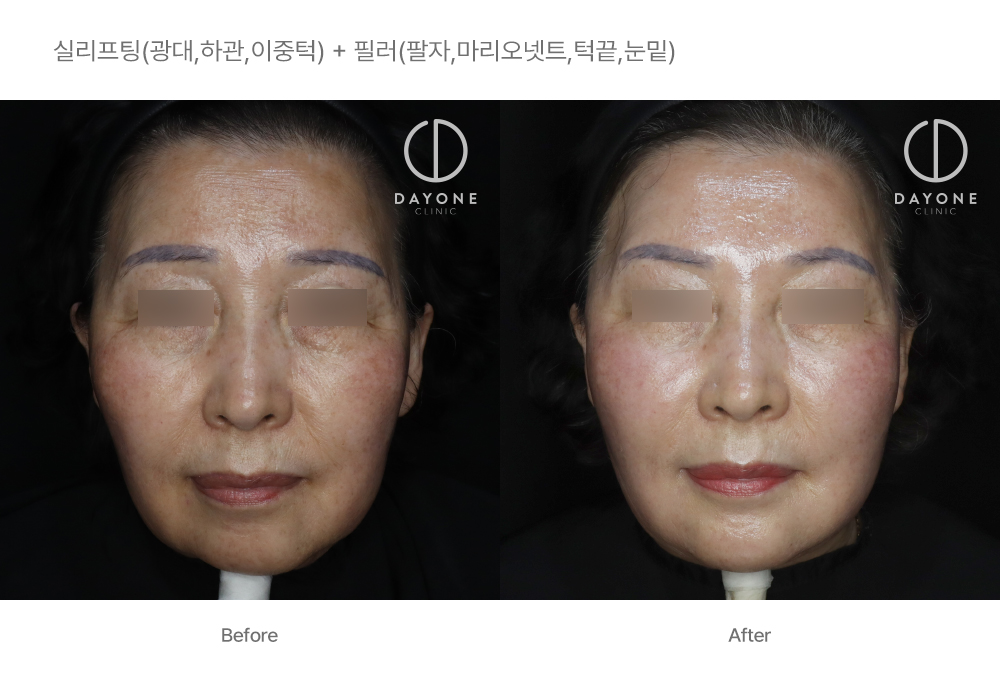 실(광대,턱라인) + 필러(이마,눈밑,팔자,마리오넷트,코,볼,입술)